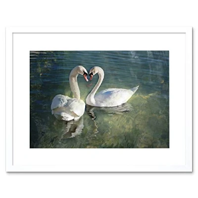 Wee Blue Coo Swans Couple Heart Love Art Framed Wall Print