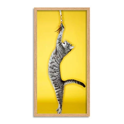 Wee Blue Coo Tabby Cat Stretching Toy Long Panel Framed Wall Art Print