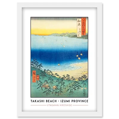 Wee Blue Coo Takashi Beach Izumi Province Utagawa Hiroshige Japanese Woodblock Classic Collection Artwork Framed Wall Art Print A4