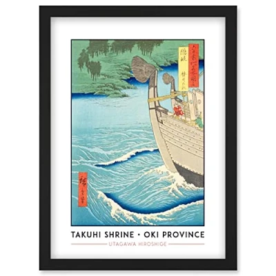 Wee Blue Coo Takuhi Shrine Oki Province Utagawa Hiroshige Japanese Woodblock Classic Collection Artwork Framed Wall Art Print A4