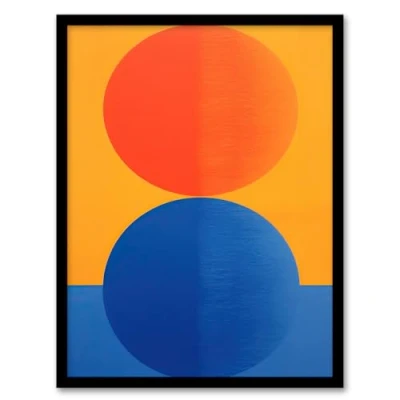 Wee Blue Coo Tangerine and Cobalt Orbs Abstract Artwork Framed Wall Art Print A4