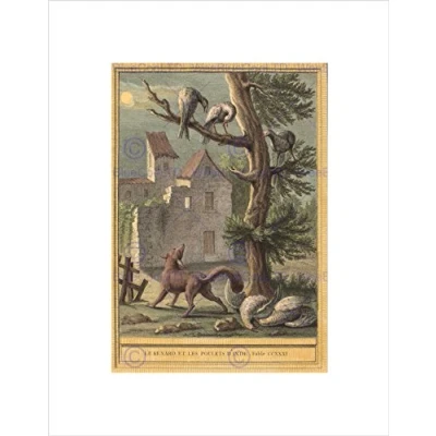 Wee Blue Coo TARDIEU OUDRY FRENCH FOX HENS INDIA BLACK FRAMED ART PRINT PICTURE B12X5422