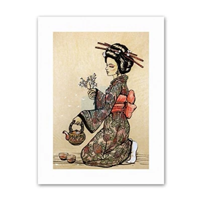 Wee Blue Coo Tea Ceremony Japanese Geisha TEAPOT Cherry Blossom Canvas Art Prints