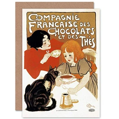 Wee Blue Coo TEA CHOCOLATE DRINK PARIS FRANCE CAT RETRO ADVERT GREETINGS CARD
