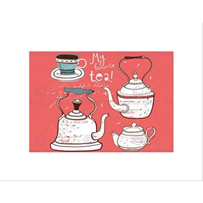 Wee Blue Coo TEAPOT VINTAGE TEA ILLUSTRATION GRUNGE BLACK FRAMED ART PRINT PICTURE B12X8113