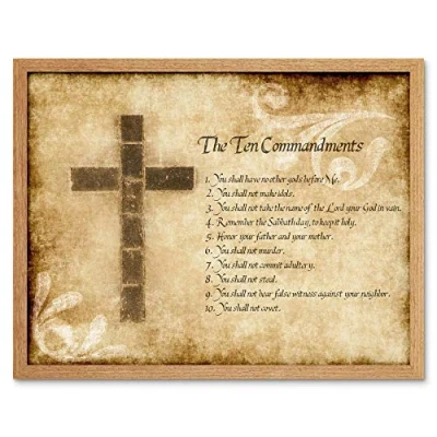 Wee Blue Coo Ten 10 Commandments Cross Christian Religious Quote Typography Art Print Framed Poster Wall Decor 12X16 Inch