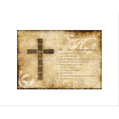 Wee Blue Coo TEN COMMANDMENTS 10 CROSS CHRISTIAN RELIGIOUS QUOTE FRAMED ART PRINT B12X13859