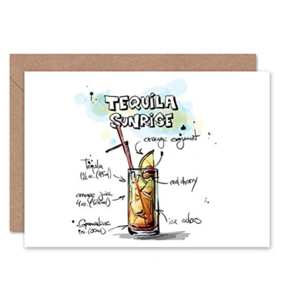 Wee Blue Coo TEQUILA SUNRISE COCKTAIL DRINK BLANK GREETINGS BIRTHDAY CARD ART