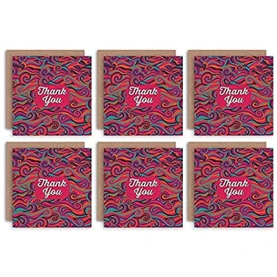 Wee Blue Coo Thank You Cards x6 Swirly Pattern Multicoloured Funcky Set