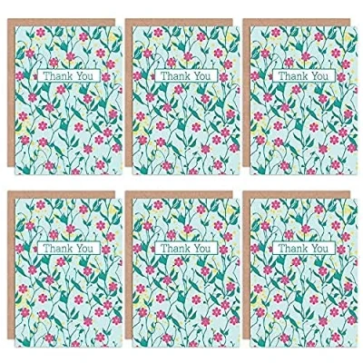 Wee Blue Coo Thank You Cards x6 Vintage Flowers Floral Pink Green Set