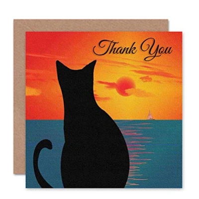 Wee Blue Coo THANK YOU CAT ANIMAL SUNSET SEA BOAT ILLUSTRATION BLANK GREETINGS CARD