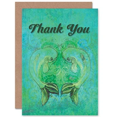 Wee Blue Coo THANK YOU GREEN FISH POND BIRTHDAY GIFT BLANK GREETINGS CARD