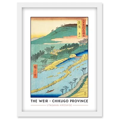 Wee Blue Coo the Currents Around Weir Chikugo Province Utagawa Hiroshige Japanese Woodblock Classic Collection Artwork Framed Wall Art Print A4