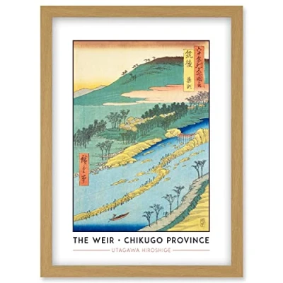 Wee Blue Coo the Currents Around Weir Chikugo Province Utagawa Hiroshige Japanese Woodblock Classic Collection Artwork Framed Wall Art Print A4