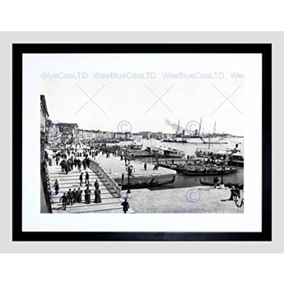 Wee Blue Coo The Port Of Venice Italy 1896 Vintage History Old BW Framed Wall Art Print