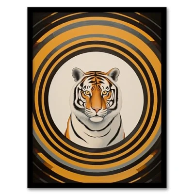 Wee Blue Coo Tiger Tunnel Yellow Black Striped Fun Artwork Framed Wall Art Print A4