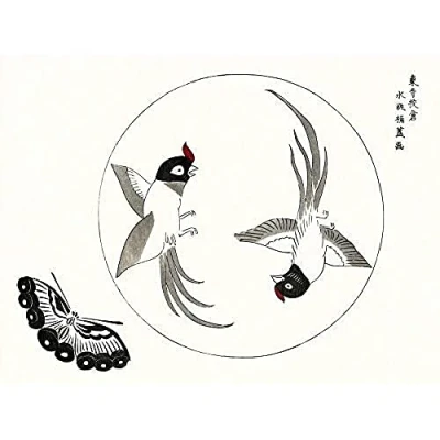 Wee Blue Coo Tomoki Birds Butterfly Japanese Woodblock Unframed Wall Art Print Poster Home Decor Premium