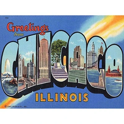 Wee Blue Coo Tourism America Travel Greetings Chicago Postcard Art Print Poster Wall Decor 12X16 Inch