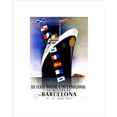 Wee Blue Coo Trade Fair Shipping Liner Barcelona Spain Vintage Advert Wall Art Print