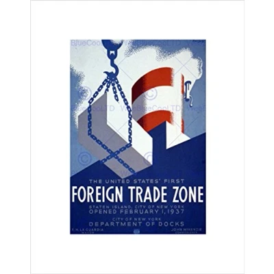 Wee Blue Coo Trade New York USA Ship Crane Cargo La Guardia Wall Art Print