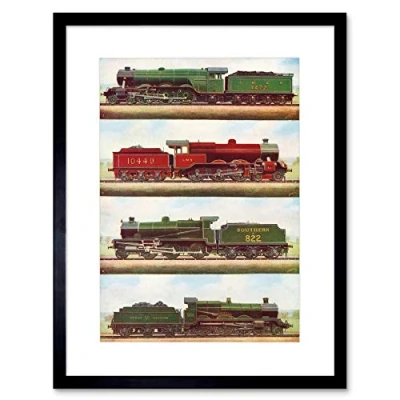 Wee Blue Coo Transport Vintage Painting Train Engine Locomotives Steam Framed Wall Art Print