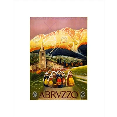 Wee Blue Coo TRAVEL ABRUZZO ITALY ALPINE RESORT MOUNTAIN CHURCH FRAMED ART PRINT B12X7904