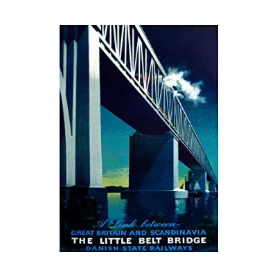 Wee Blue Coo Travel Ad Rail Bridge Little Belt Denmark Scandinavia Wall Art Print