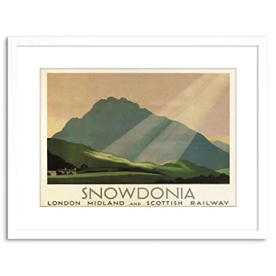 Wee Blue Coo TRAVEL AD RAILWAY RAIL SNOWDONIA WALES MOUNTAIN SUN FRAMED PRINT F97X6885