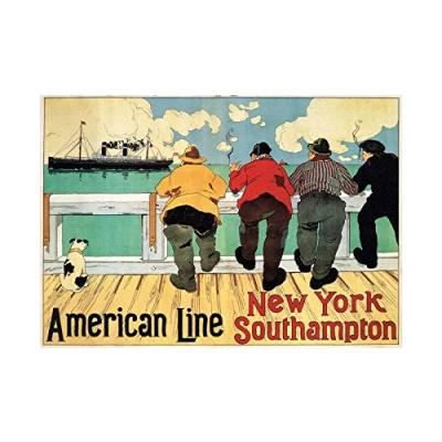 Wee Blue Coo Travel Ad Ship American Line Southampton New York Vintage Wall Art Print