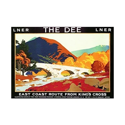 Wee Blue Coo Travel Ad Train Rail River Dee Aberdeen Scotland Highlands Wall Art Print