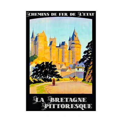 Wee Blue Coo Travel Ad Vintage Brittany Bretagne Castle Scenic Wall Art Print