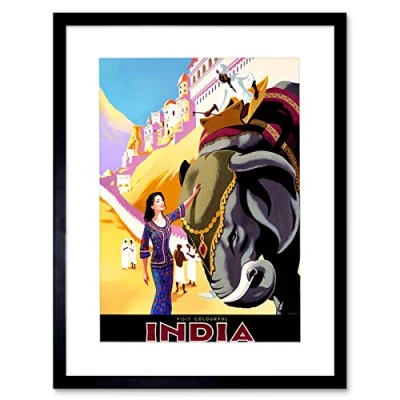 Wee Blue Coo TRAVEL ADVERT ELEPHANT ILLUSTRATION INDIA NEW FRAMED PRINT F97X6684