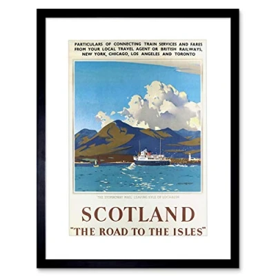 Wee Blue Coo TRAVEL ADVERT SCOTLAND ISLES LOCHALSH STORNOWAY MAIL FRAMED PRINT F97X6686