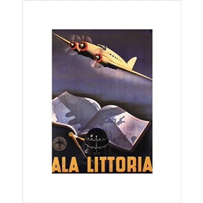 Wee Blue Coo Travel Ala Littoria Air Flight Plane Italy Vintage Advert Wall Art Print