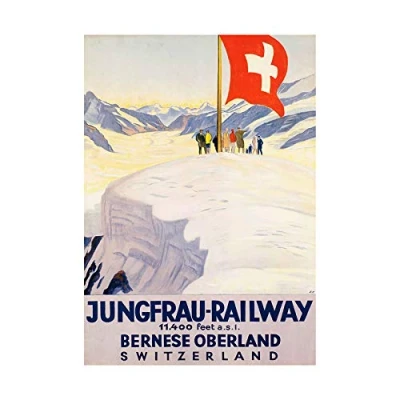 Wee Blue Coo Travel Alpine Rail Jungfrau Mountain Flag Swiss Picture Wall Art Print
