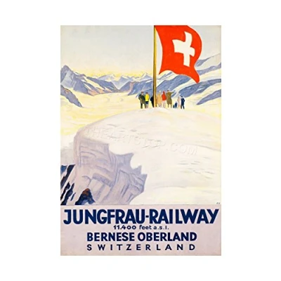 Wee Blue Coo Travel Alpine Railway Jungfrau Mountain Swiss Flag Snow Wall Art Print