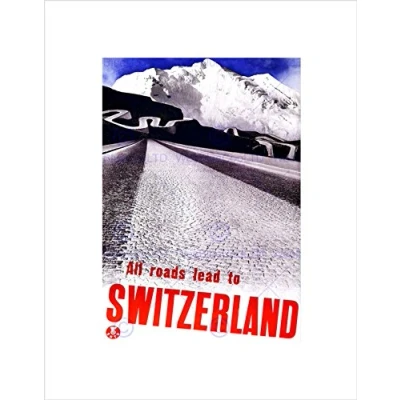 Wee Blue Coo Travel Alpine Road Mountain Snow Switzerland Vintage Advert Art Wall Print