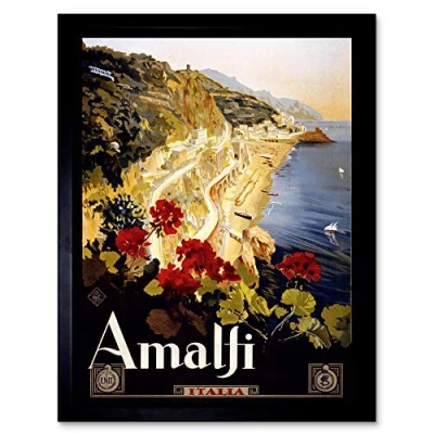 Wee Blue Coo Travel Amalfi Coast Beach Italia Italy Art Print Framed Poster Wall Decor 12X16 Inch