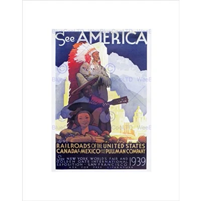 Wee Blue Coo Travel America Railroad Pullman Vintage Advert Wall Art Print