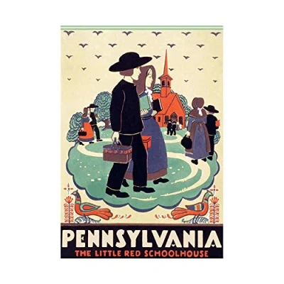 Wee Blue Coo Travel Amish Pennsylvania Little Red Schoolhouse USA Ad Wall Art Print
