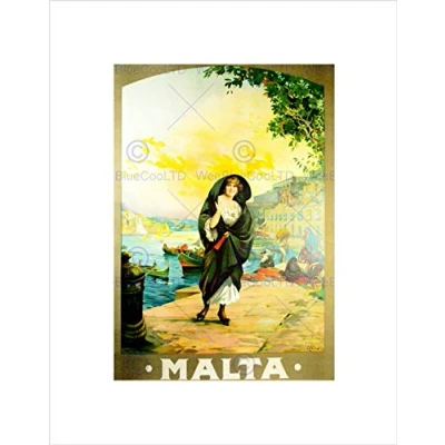 Wee Blue Coo TRAVEL ANTIQUE MALTA ISLAND MEDITERRANEAN SEA HARBOUR BOAT FRAMED PRINT B12X7908
