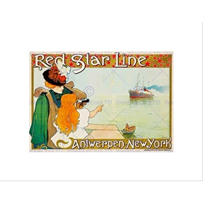 Wee Blue Coo TRAVEL ANTWERP NEW YORK LINE SHIP LINER BOAT NOUVEAU BELGIUM ART PRINT B12X7354