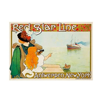 Wee Blue Coo Travel Antwerp New York Line Ship Liner Boat Nouveau Wall Art Print
