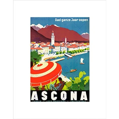 Wee Blue Coo TRAVEL ASCONA SWISS ALPINE RESORT LAKE MAGGIORE FRAMED ART PRINT MOUNT B12X7910