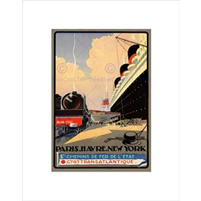 Wee Blue Coo TRAVEL ATLANTIC SHIP LINER OCEAN BOAT DOCK TRAIN FRANCE FRAMED PRINT B12X10265