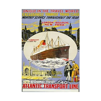 Wee Blue Coo Travel Atlantic Ship London New York UK Vintage Advert Wall Art Print