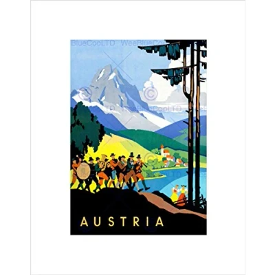 Wee Blue Coo TRAVEL AUSTRIA ALPINE MOUNTAINS TRADITIONAL BAND LAKE FRAMED ART PRINT B12X12348