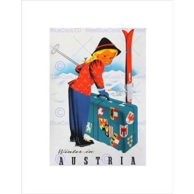 Wee Blue Coo TRAVEL AUSTRIA ALPINE WINTER SPORT SKIING SNOW VINTAGE ADVERT ART PRINT B12X1492