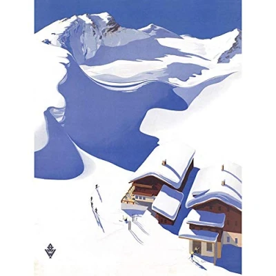 Wee Blue Coo Travel Austria Ski Lodge Alps Snow Art Print Poster Wall Decor 12X16 Inch