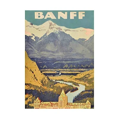 Wee Blue Coo Travel Banff Canada Rockies Hotel Mountain Picture Wall Art Print